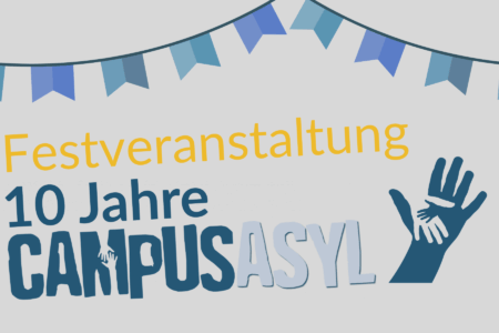 Wir freuen uns sehr, auch auf diesem Weg auf ein ganz besonderes Ereignis zum Jahresende aufmerksam machen zu können: CampusAsyl feiert am 06. November sein 10-jähriges Bestehen im Rahmen einer Festveranstaltung an der Universität Regensburg! Dieses Jubiläum möchten wir zum Anlass nehmen, gemeinsam zurückzublicken, Erreichtes zu würdigen und in die Zukunft zu schauen.