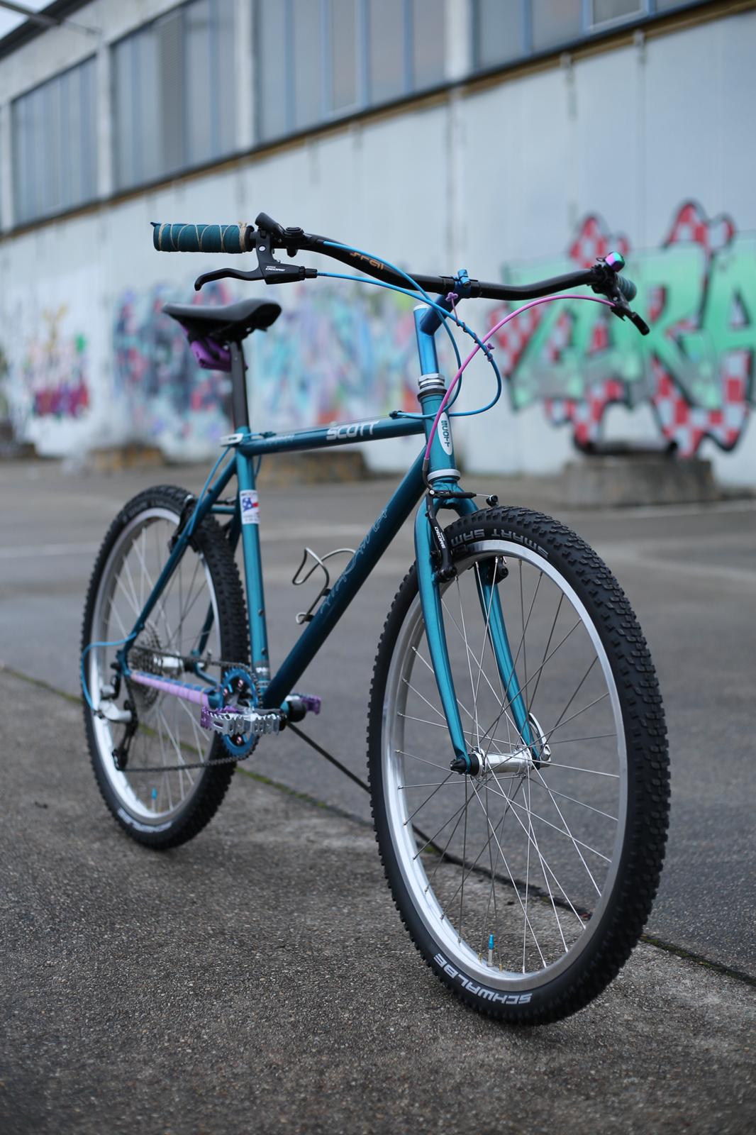 Ein liebevoll aufgebautes 90s SCOTT Atacama – 1×10 TOO TIRED CYCLES Restomod. Ein Rad mit Geschichte, Charakter und unglaublich vielen durchdachten Details. Besonders viel Herzblut floss in die selbstgebundenen custom Griffe und den Chainstay-Schutz – echte Handarbeit, die man sieht und fühlt.